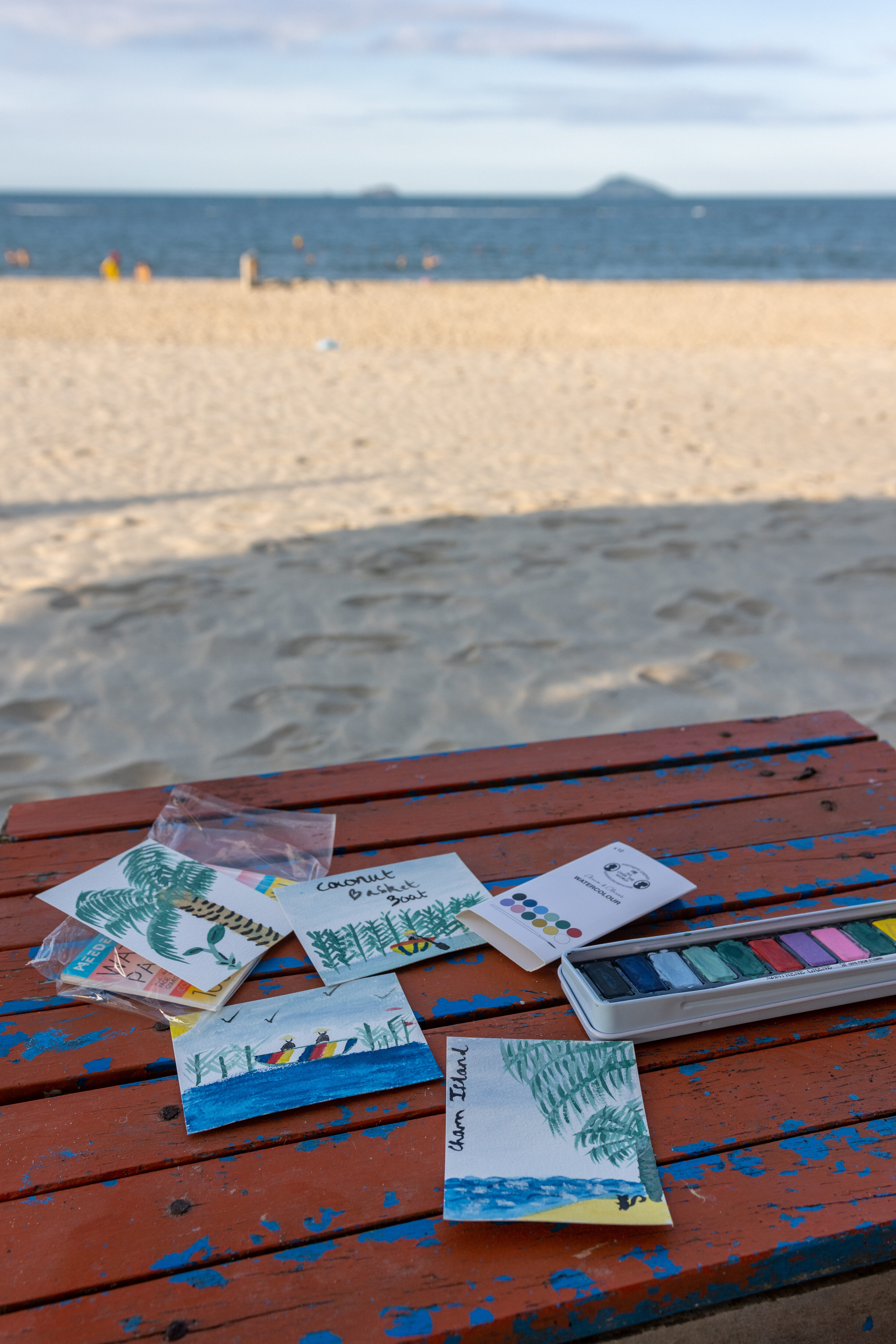 Notre dernier jour, nous nous sommes relaxés à la plage Cua Dai Beach, jusqu’au coucher du soleil. C’est une plage de 8 km, avec du sable blanc et des palmiers. Lorsque nous y étions, il n’y avait pas beaucoup de monde.