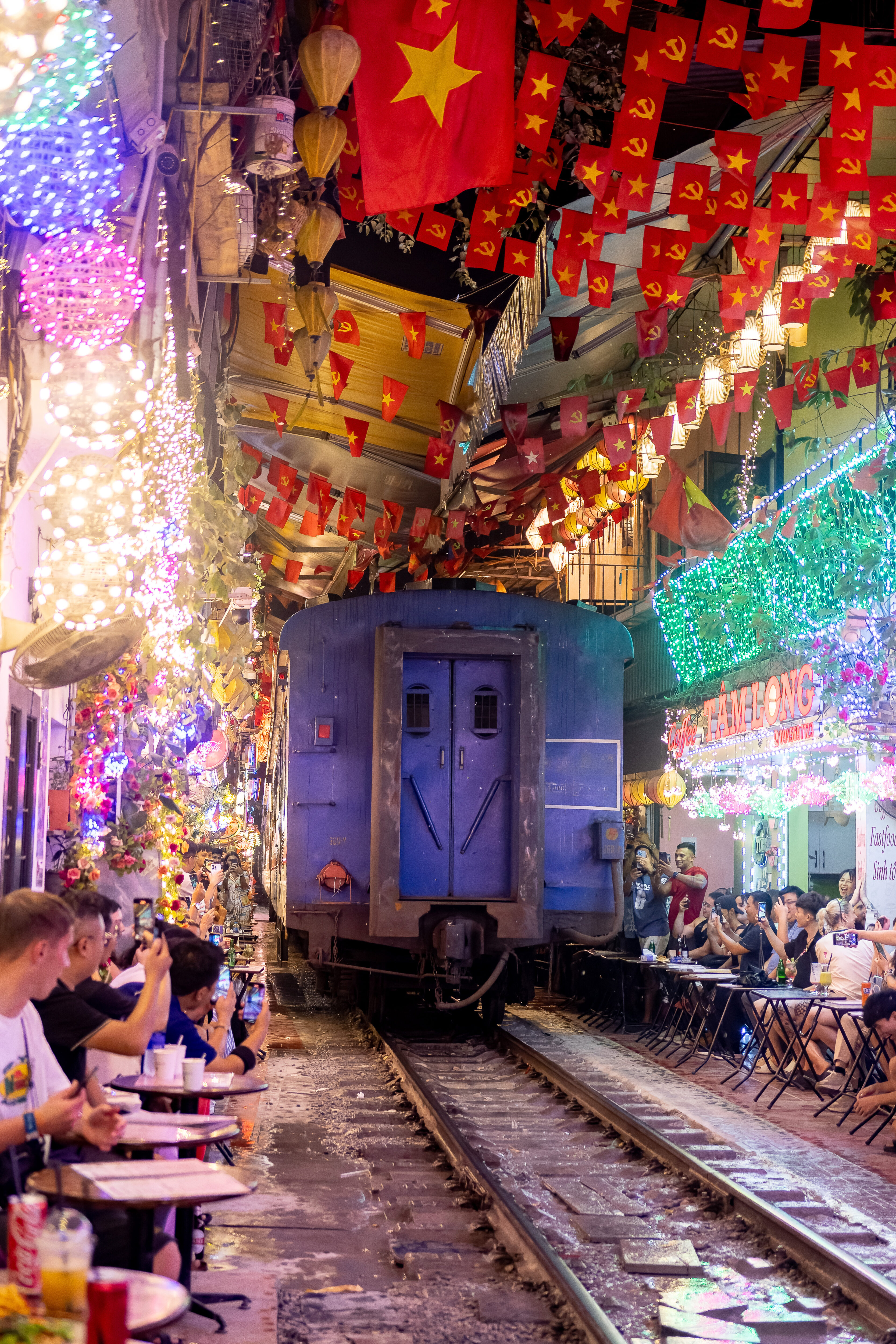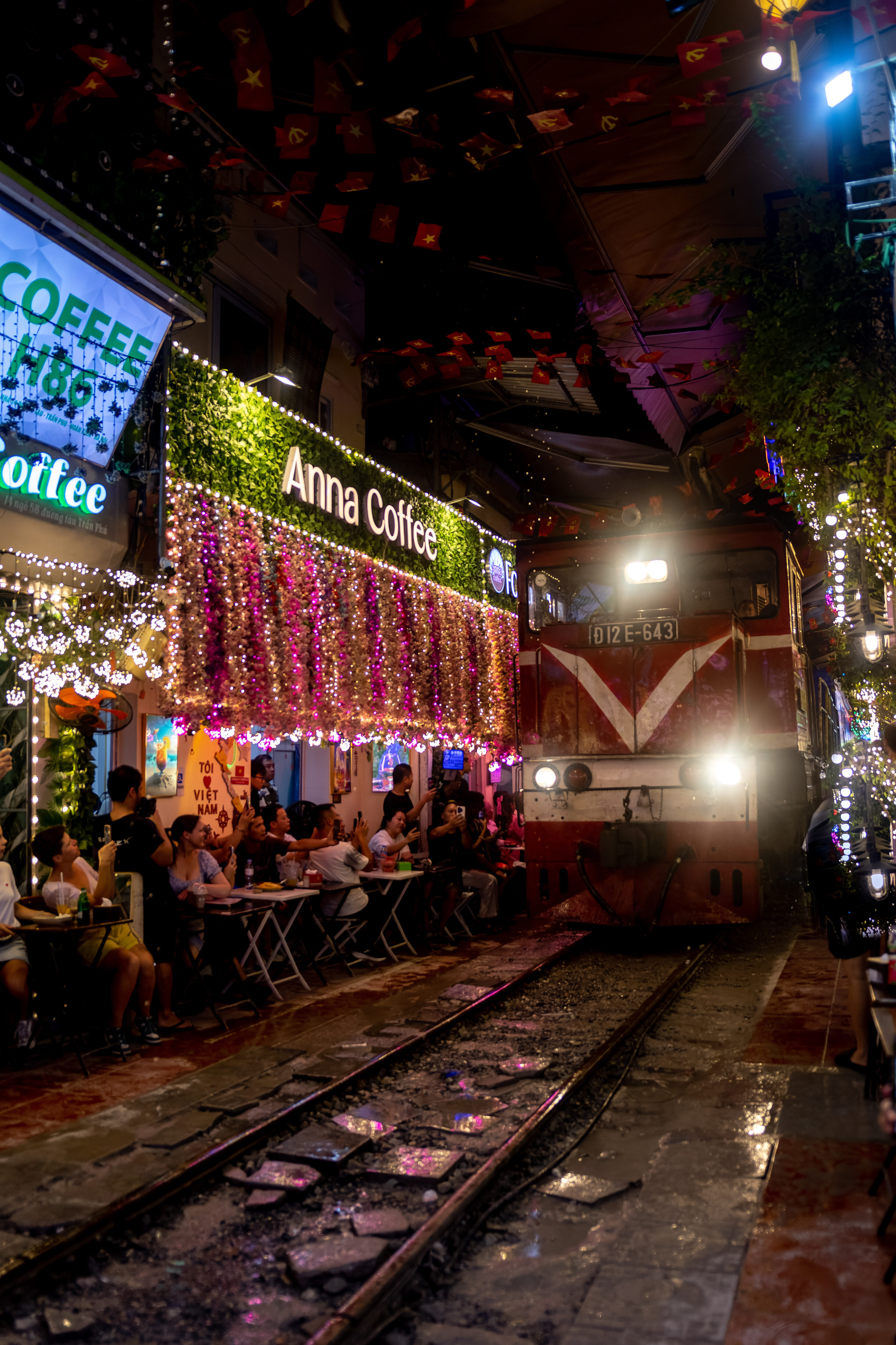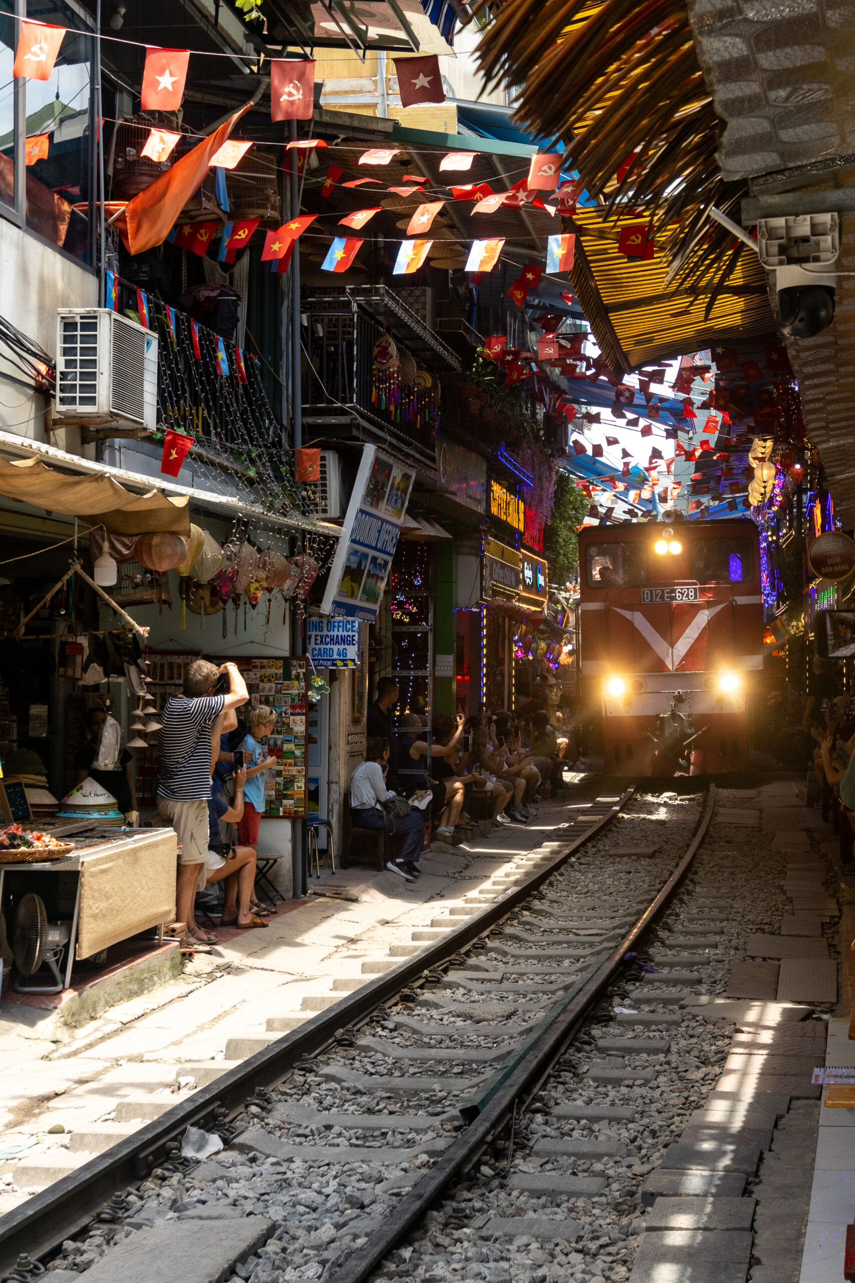 Le Hanoi Train Street : l’attraction la plus touristique de Hanoï, mais qui vaut tout de même le détour. Nous y sommes allés de jour et de nuit. Il faut se renseigner sur les horaires qui peuvent changer. Lorsque nous y étions, les trains passaient à 9h20, 11h45, 15h15, 19h40, 21h15 et 22h du lundi au vendredi. Le weekend, il y avait deux horaires en plus : 17h40 et 18h10.