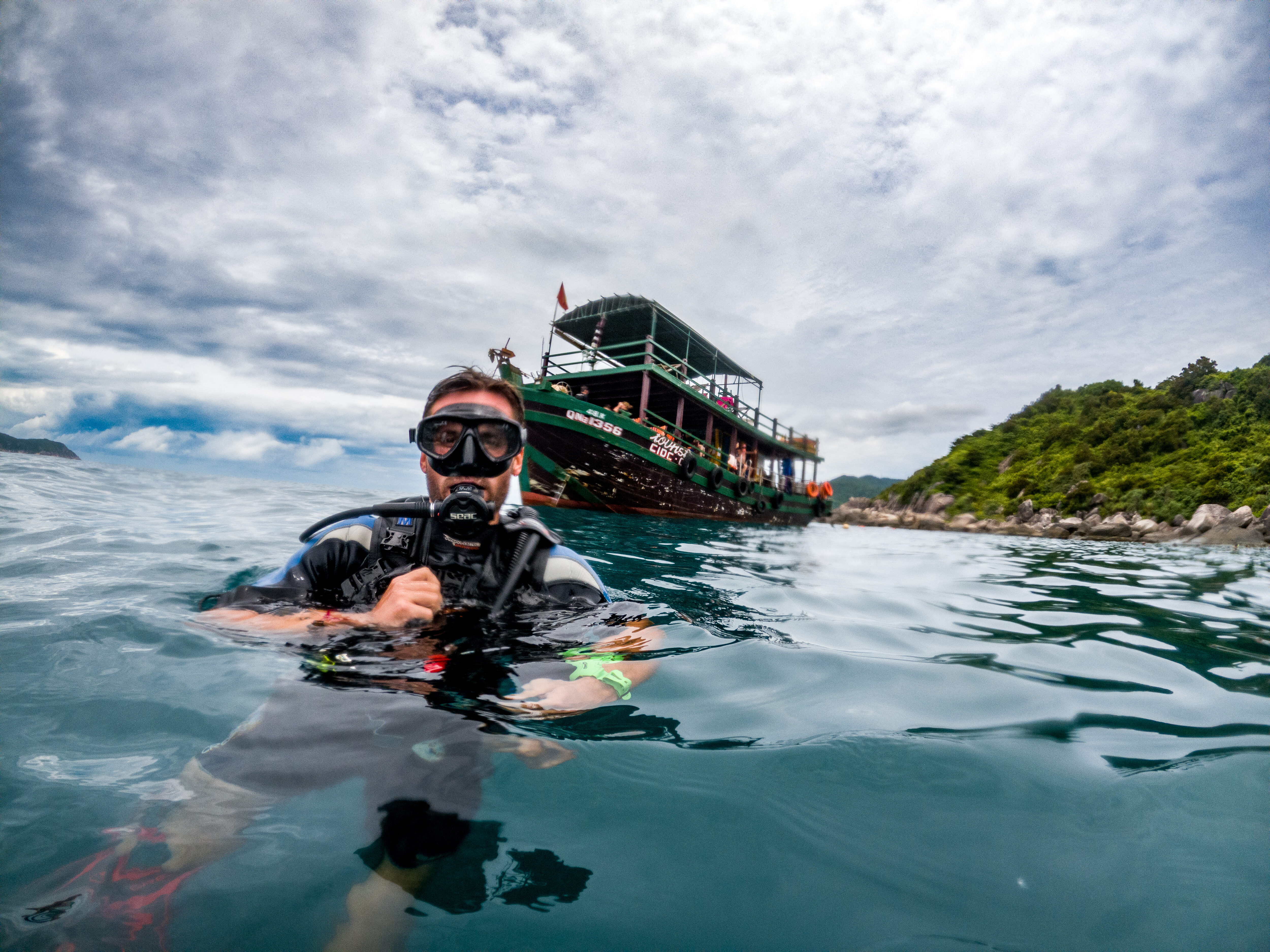 Nous avons plongé avec Cham Island Diving, les 2 plongées coûtent 2.200k (72€), ce qui inclut l’équipement, le transfert depuis les hôtels, le repas, 2 plongées, et une pause sur les plages des îles Cham l’après-midi pour bronzer. Nous avons adoré. On avait vu que le Vietnam n’était pas réputé pour la plongée car ils pêchaient anciennement à la bombe, mais les îles Cham sont au patrimoine de l’UNESCO et sont des îles protégées, les fonds sont encore préservés. J’ai plongé dans d’autres pays d’Asie, le Vietnam n’est pas la meilleure destination pour plonger, mais je n’étais pas déçue. Sur Cham Island, nous avons même vu un singe.