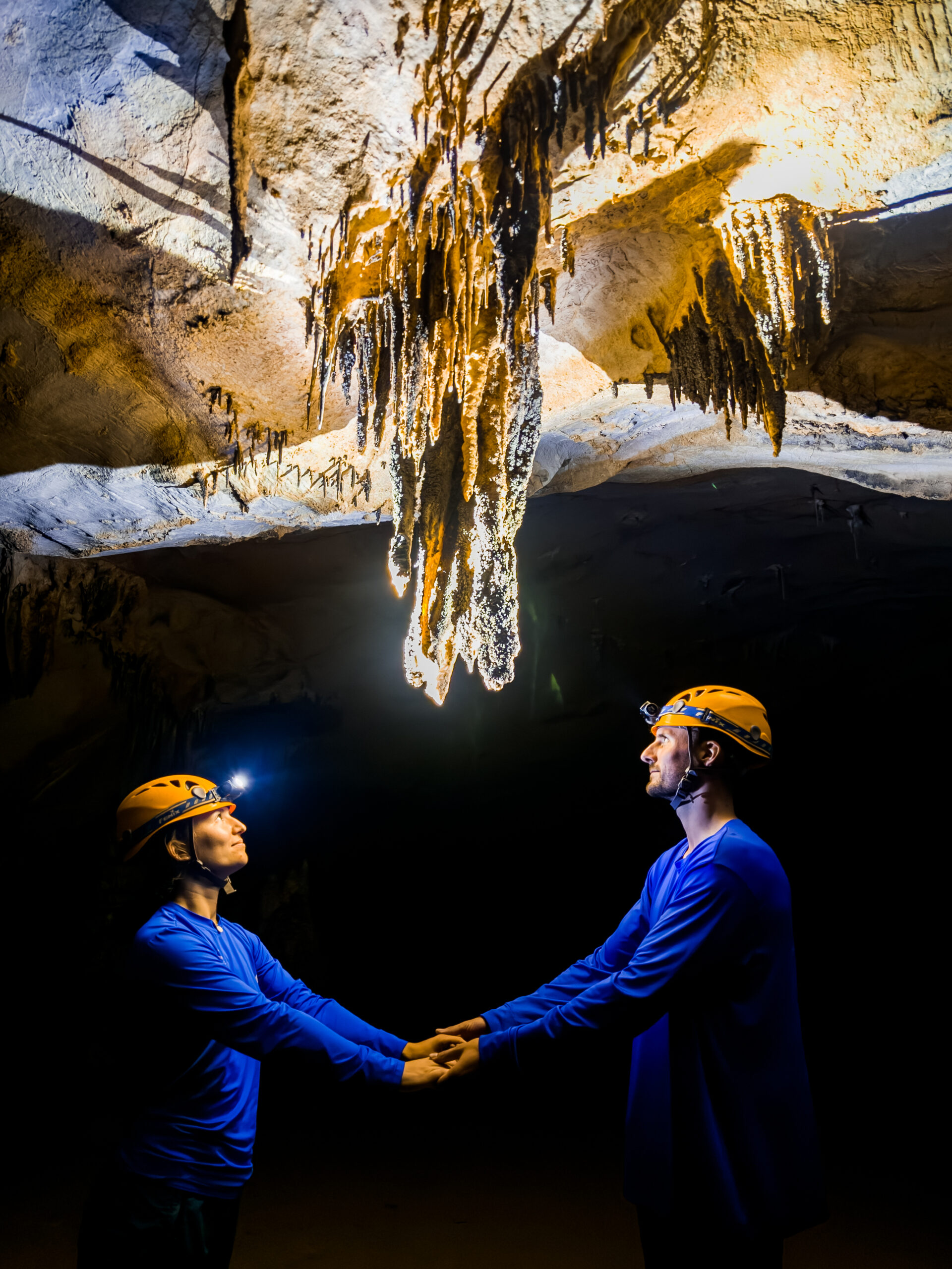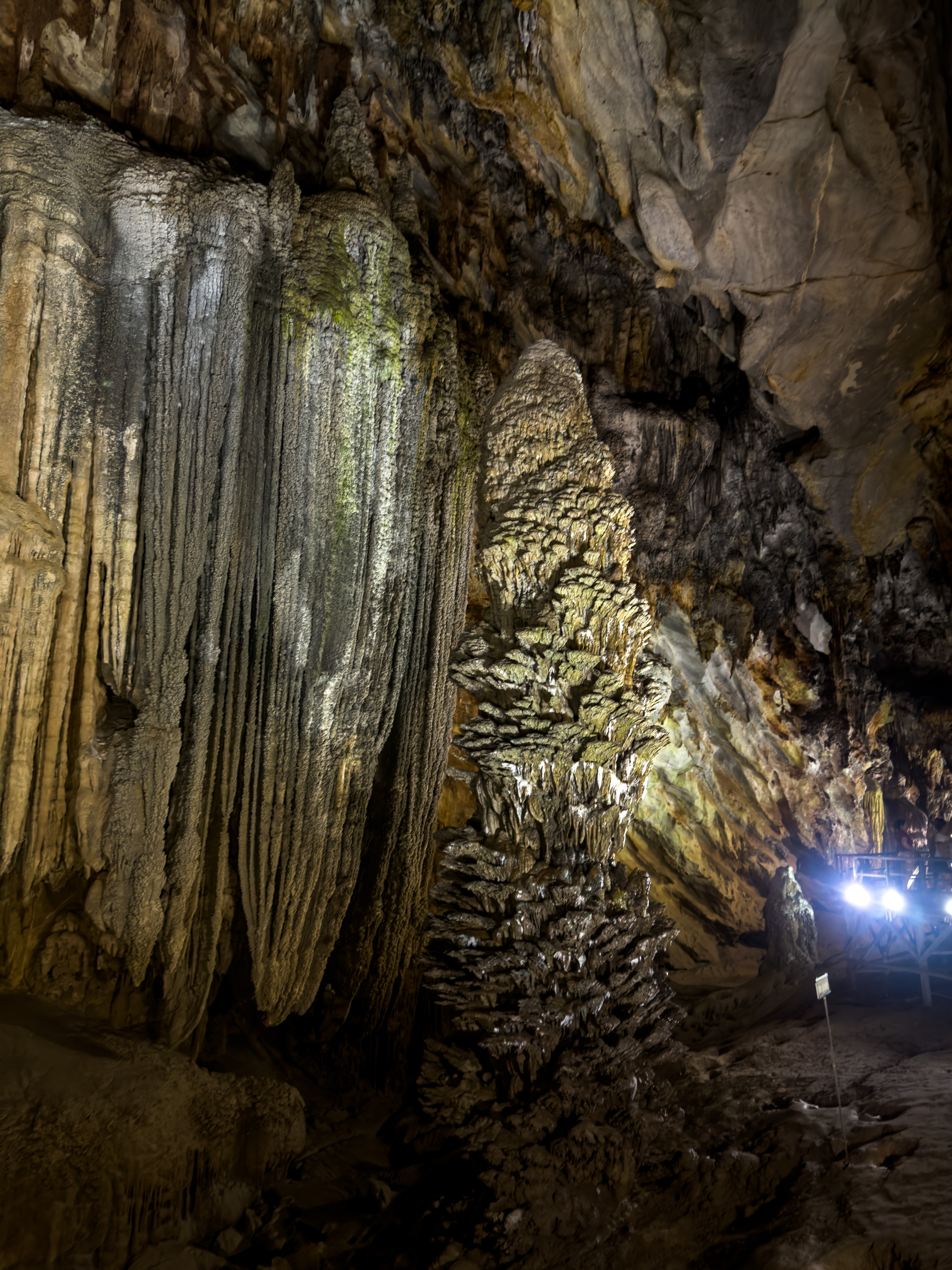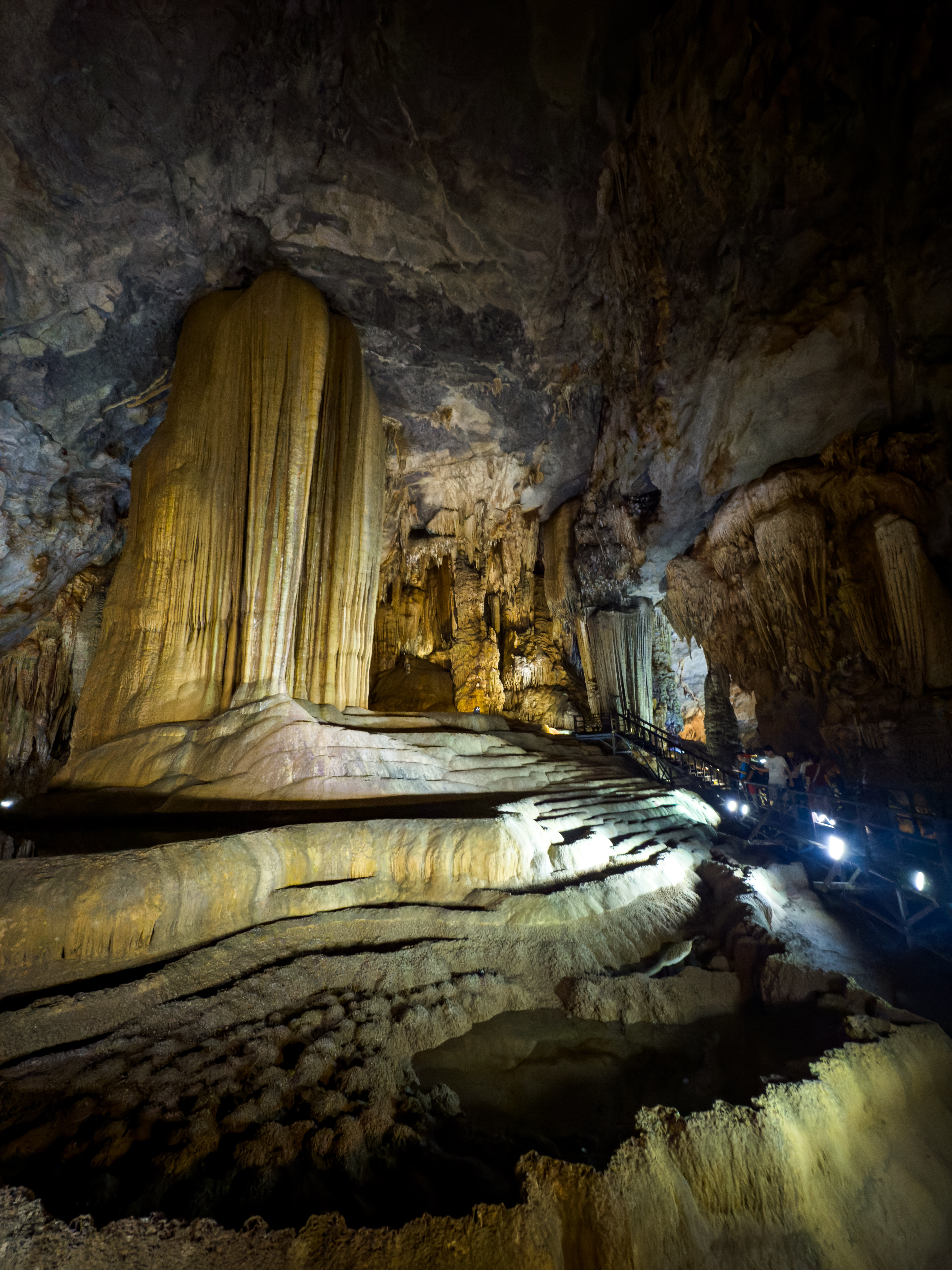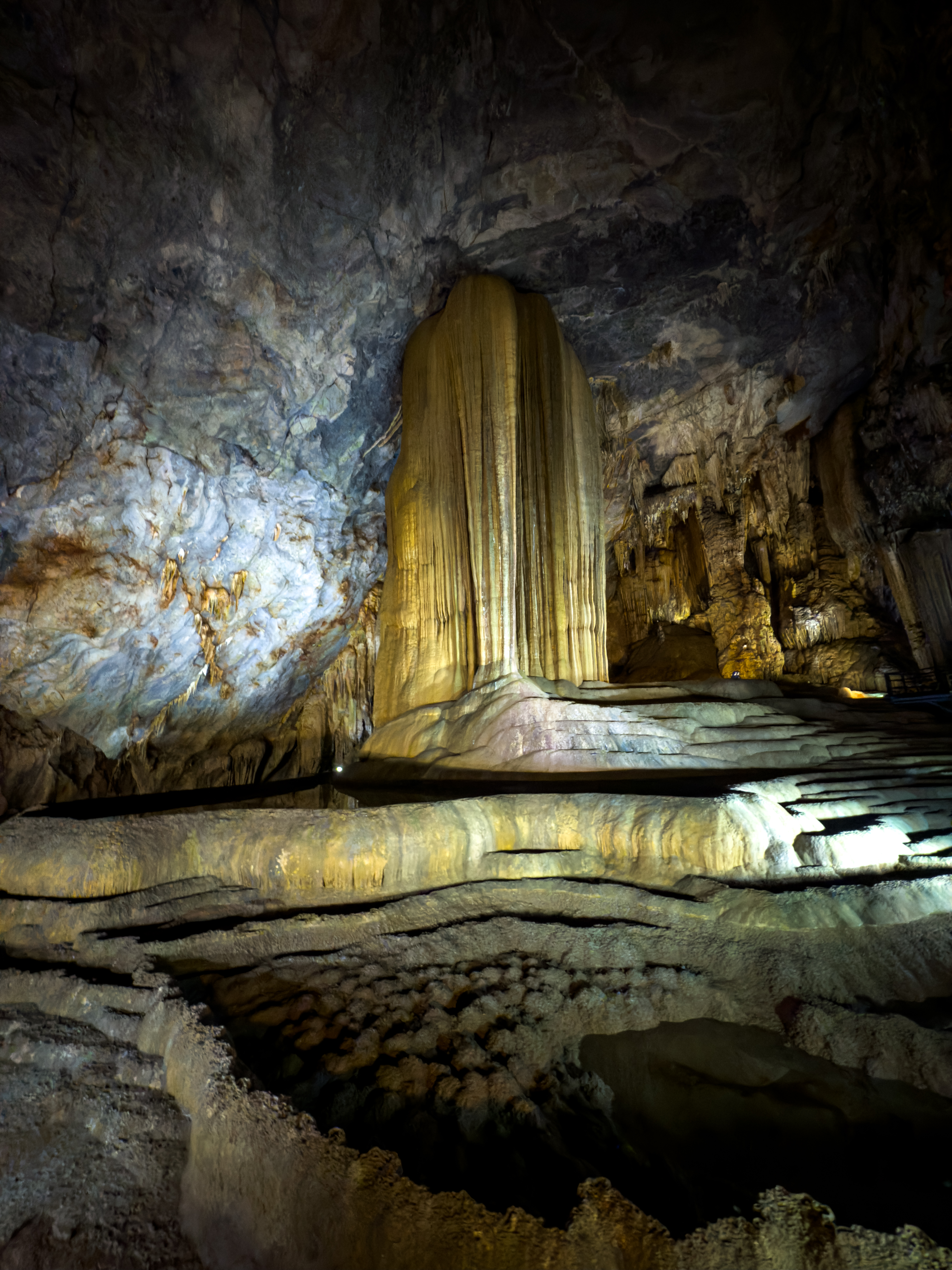 Paradise Cave : La cave fait 31 km, mais seulement 1 km est accessible à pied. L’entrée coûte 270k. Il est possible de faire un trek de 7 km pour 2 000k. Lors de notre visite, le trek de 7 km n’était pas accessible, mais nous avons pu faire 4 km et du kayak (ou se baigner pour les plus courageux) pour 1 500k par personne. Notre coup de cœur ! Paradise Cave est la plus belle grotte de Phong Nha selon nous, elle est très impressionnante et préservée. Après avoir traversé le kilomètre accessible à tous les visiteurs, nous nous munissons de casques et de frontales et nous partons explorer la partie cachée de la grotte en petit comité. Il y a une seule visite par jour et nous étions un groupe de 10 personnes. La guide nous a fait découvrir un scorpion fluorescent, nous a expliqué les différences entre stalagmites et stalactites, et expliqué l’histoire de la découverte de la cave. L’excursion incluait le repas, qui était délicieux.